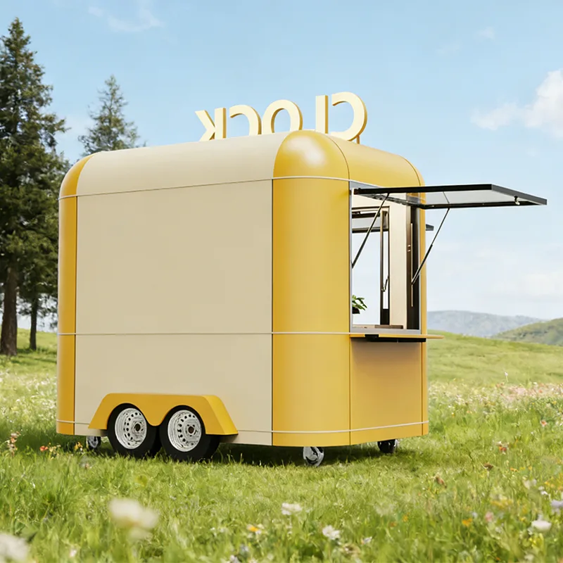 O produto é construído com estrutura de aço leve, equipado com peças de reboque reforçadas e sistema de suspensão estável, que pode ser facilmente rebocado por uma pequena caminhonete, equilibrando mobilidade e capacidade de carga. Ele se adapta a diversas condições de estrada, como becos urbanos e locais ao ar livre, e é conveniente e eficiente de implantar. O corpo é feito de painéis anticorrosivos de qualidade alimentar e revestimentos impermeáveis, que foram submetidos a tratamento de prevenção de ferrugem para resistir ao vento externo, chuva e manchas de óleo. A aparência suporta personalização personalizada, pode ser pulverizada com padrões e colada com sinais de marca, e é combinada com uma cobertura dobrável de sol e chuva e caixas de luz embutidas, atraindo a atenção e desviando os clientes durante o dia e adaptando-se às operações do mercado à noite. O interior é uma bancada totalmente em aço inox e piso antiderrapante, resistente a manchas de óleo e fácil de limpar, atendendo aos requisitos higiênicos para operações de lanches de rua.